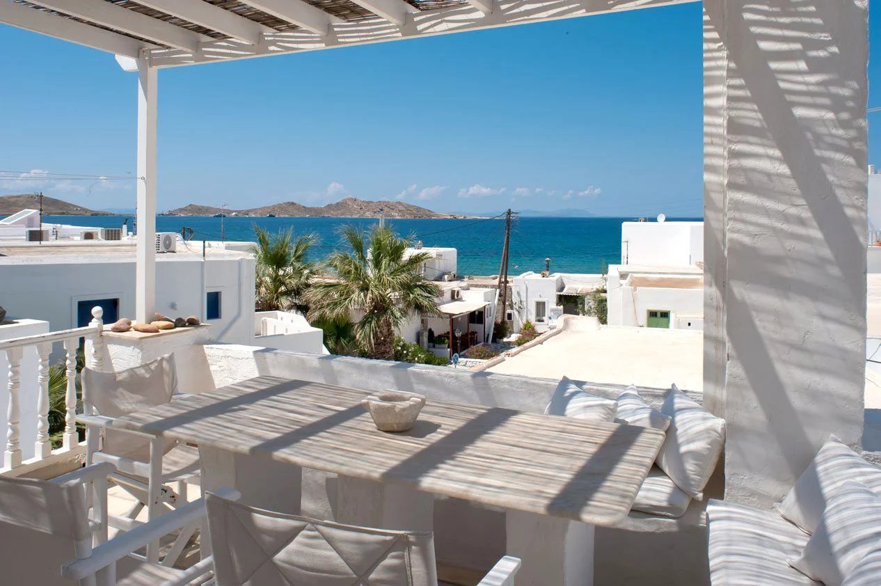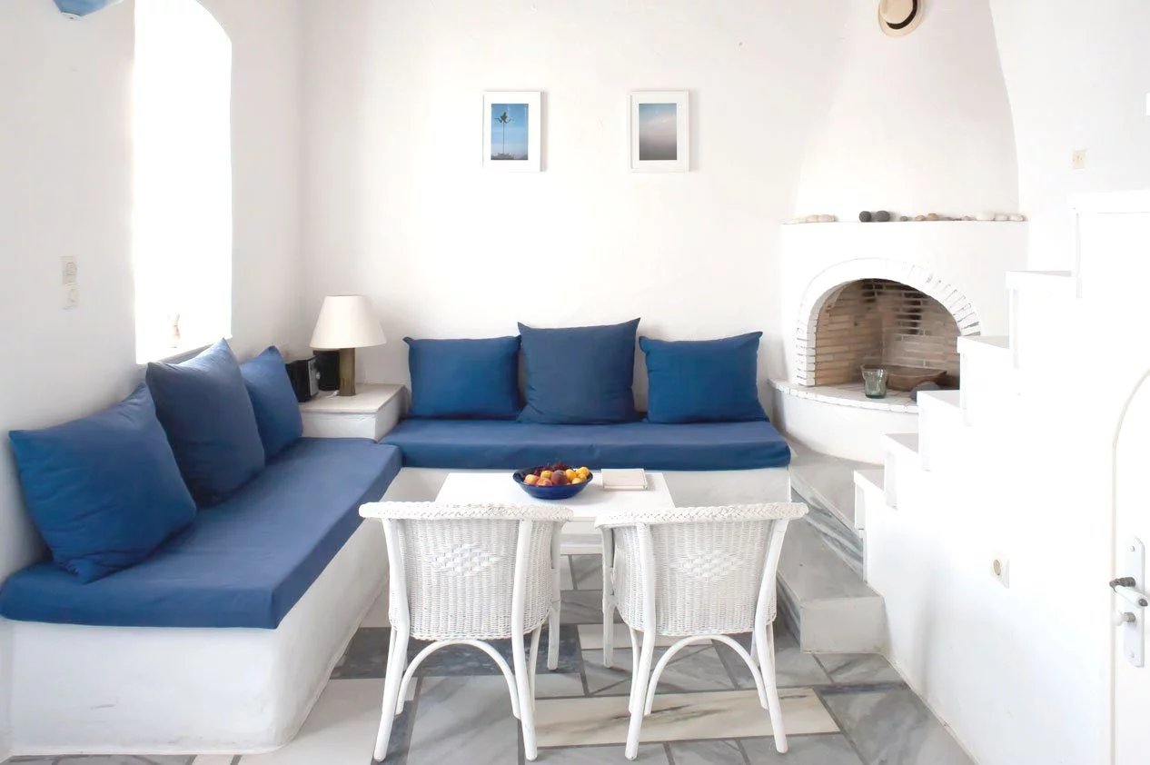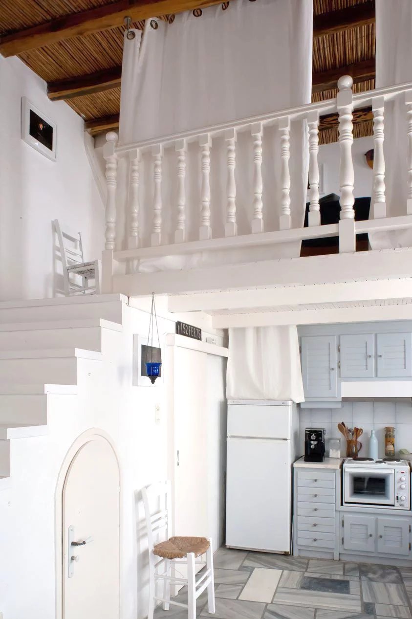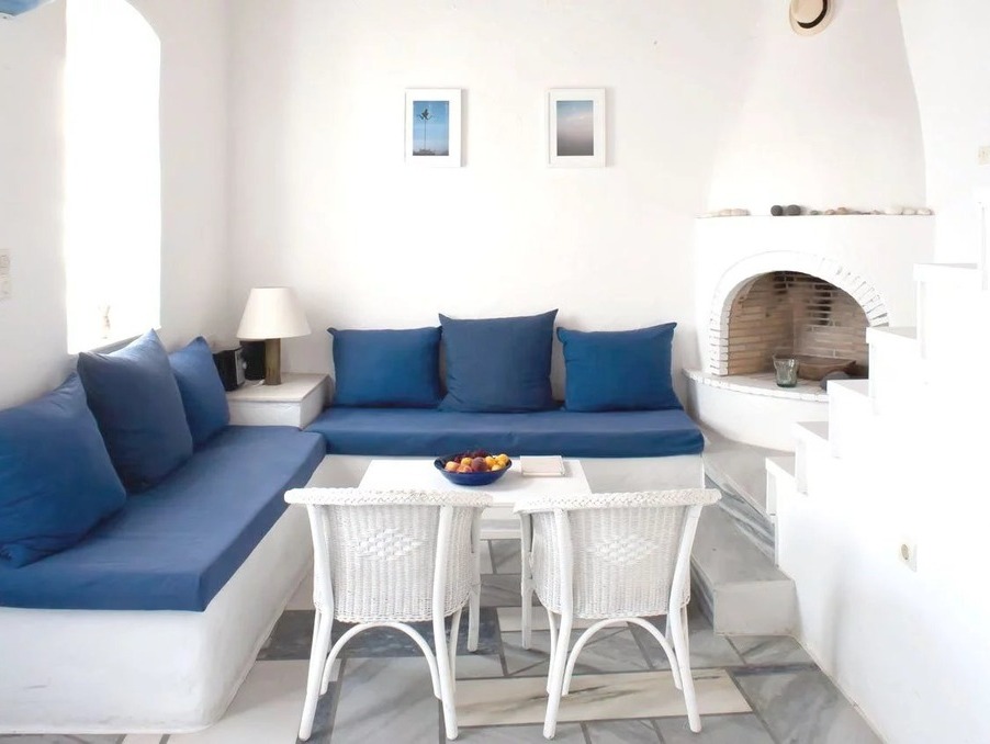 Au cœur du village pittoresque de Naoussa, cette jolie petite maison très bien aménagée et très fonctionnelle pour 4 personnes se situe à proximité des commerces, des tavernes, à quelques mètres du petit port et offre une belle vue sur la mer. Le rez-de-chaussée comprend le salon/salle à manger, la cuisine équipée et la salle de bains. Quelques marches plus haut, deux couchages avec deux lits simples occupent la mezzanine. La chambre double climatisée se trouve au premier étage, ainsi que la terrasse avec vue sur la mer. Sur la terrasse, une belle table en marbre et des chaises invitent aux repas à l'extérieur.