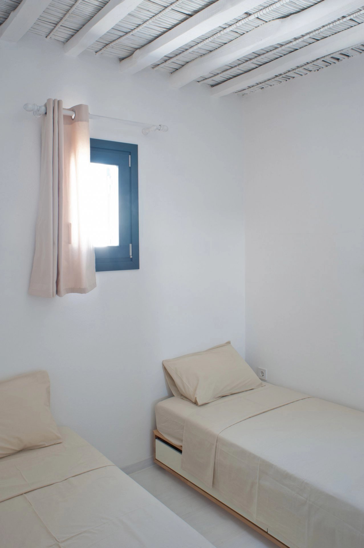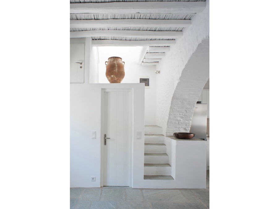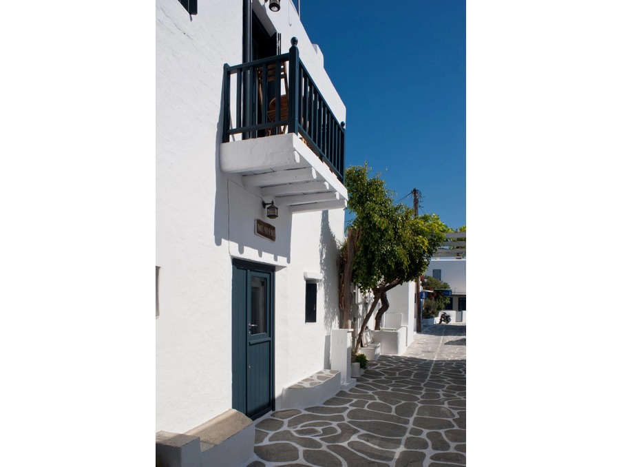 Cette maison ancienne, dans le centre du village de Naoussa, a été récemment rénovée. La maison se compose d'un salon, d'une salle à manger et d'une salle de bain au rez-de-chaussée. Trois chambres et une salle de bain au premier étage (deux chambres avec un lit double chacune et une chambre avec deux lits simples). Un petit escalier en bois mène à la terrasse avec sa magnifique vue sur la baie de Naoussa !