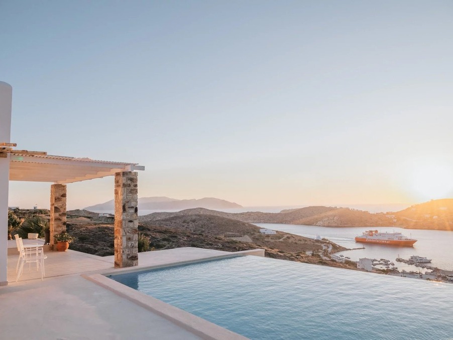 Nichée sur les hauteurs d’Ios, cette villa exceptionnelle offre une vue imprenable sur la mer Égée, les couchers de soleil spectaculaires et les lumières de Chora au loin. Sur un terrain de 4 100 m², la maison de 250 m² allie intimité, confort et élégance.