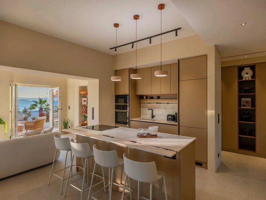Implantée sur un terrain de 730 m² dans le secteur très recherché de Krotiri, elle allie architecture contemporaine et décoration haut de gamme. Vendue entièrement meublée, équipée et prête à vivre.