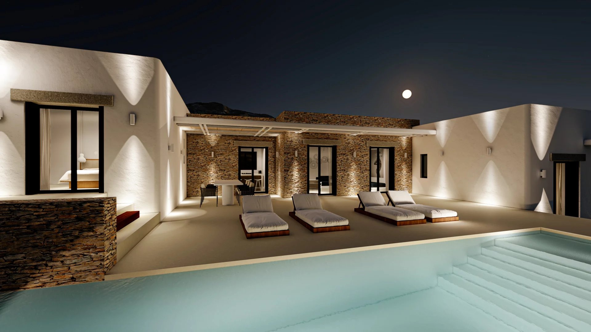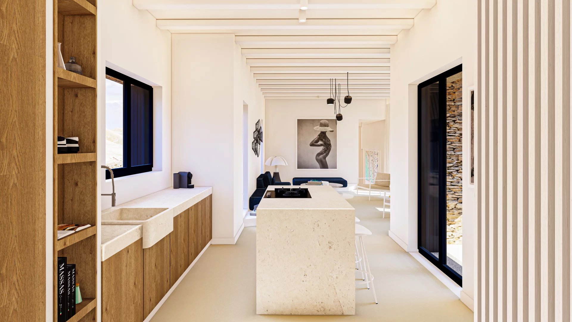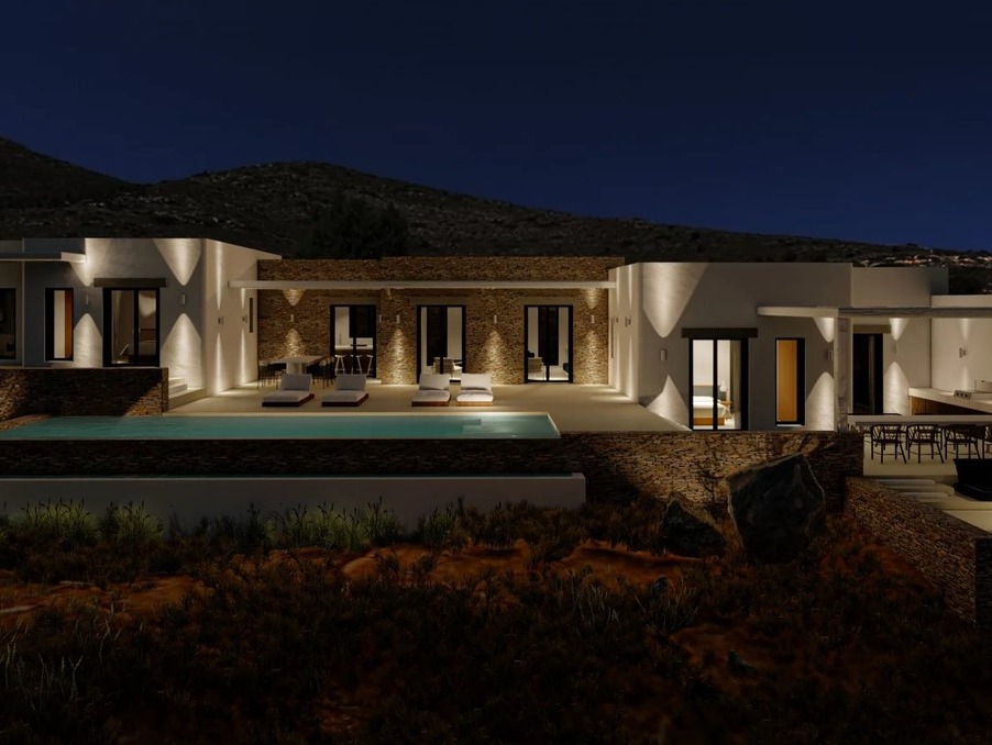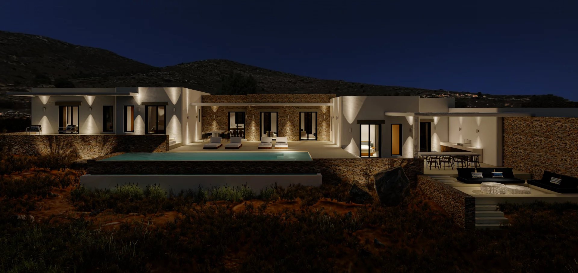 Sur les hauteurs de Golden Beach, ce projet de villa bénéficie d’un emplacement exceptionnel avec vue dégagée sur la mer Égée. Deux villas indépendantes, conçues par des architectes, allient volume, lumière et intimité dans un cadre naturel préservé.