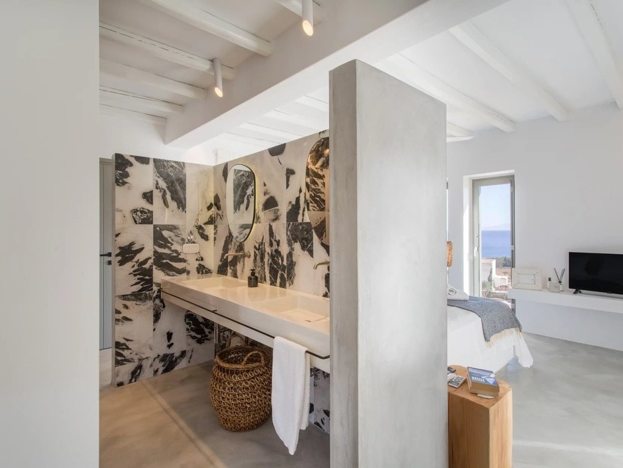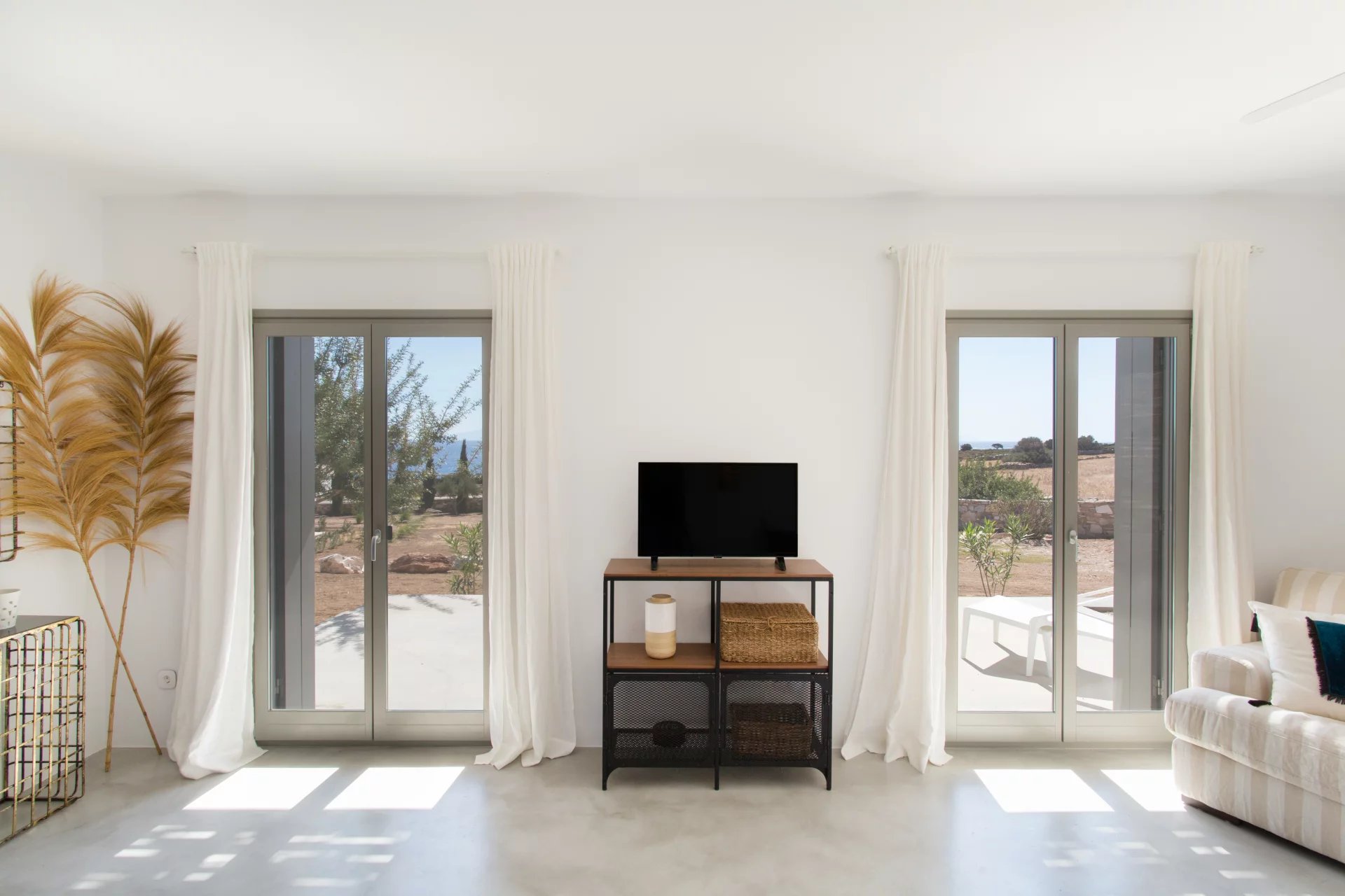 Située juste au-dessus de la magnifique plage de Lolandonis, cette villa entièrement rénovée offre une vue panoramique imprenable sur la mer Égée. Pensée dans les moindres détails, elle combine élégance, confort moderne et atmosphère cycladique.