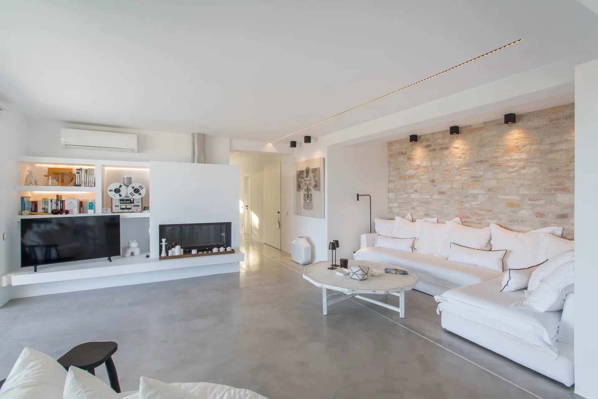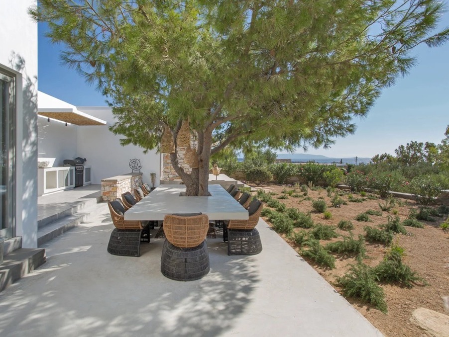 Cette villa à vendre à Paros est idéale pour les familles ou groupes d’amis en quête d’un refuge luxueux face à la mer.