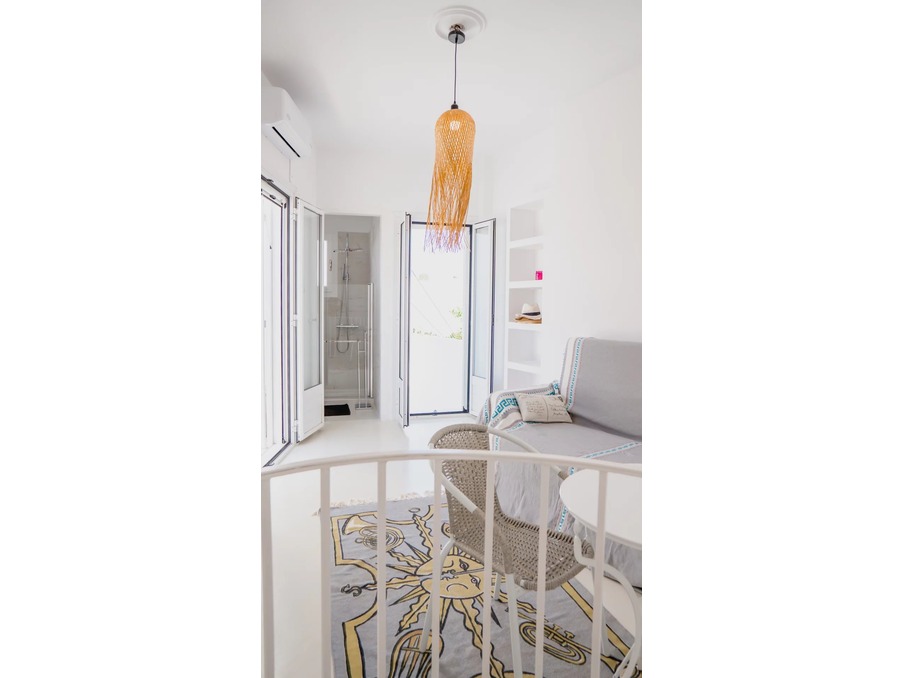 À distance de marche de la plage, vue imprenable sur la mer et sur le port de Parikia, dans un complexe avec piscine, jolie maison Cycladique de 65m² sur deux étages. Composée d'une pièce à vivre ave...
