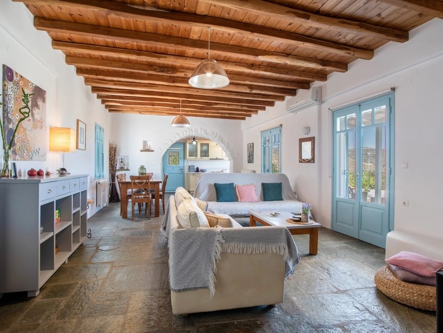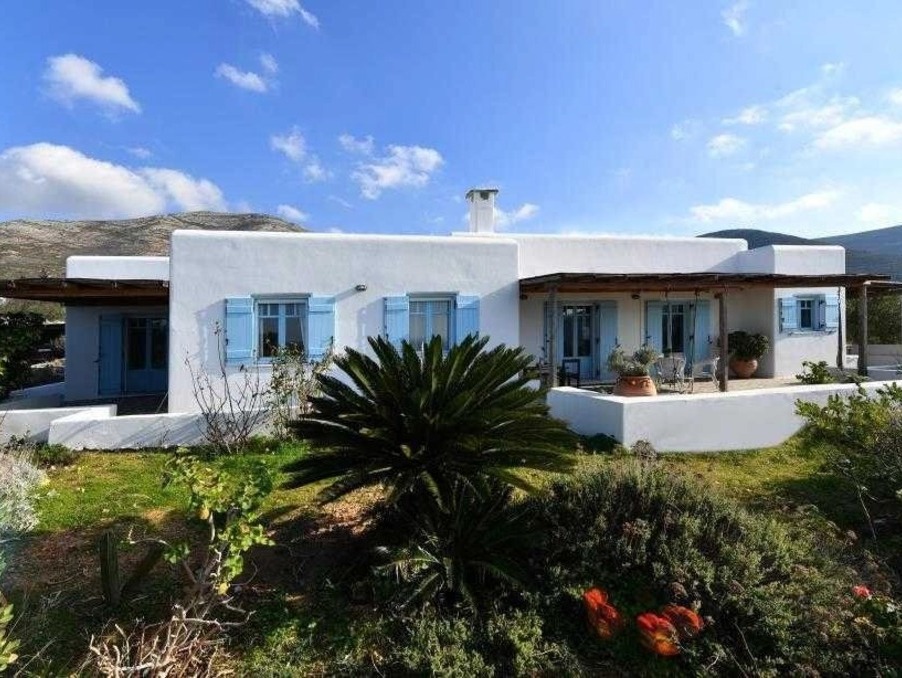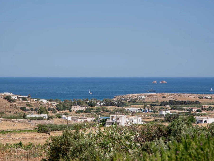 Sur les hauteurs de Parikia, au cœur d’un environnement naturel préservé, cette maison de plain-pied allie authenticité, calme absolu et belle vue dégagée sur la mer Égée.