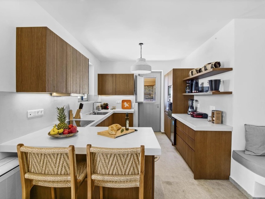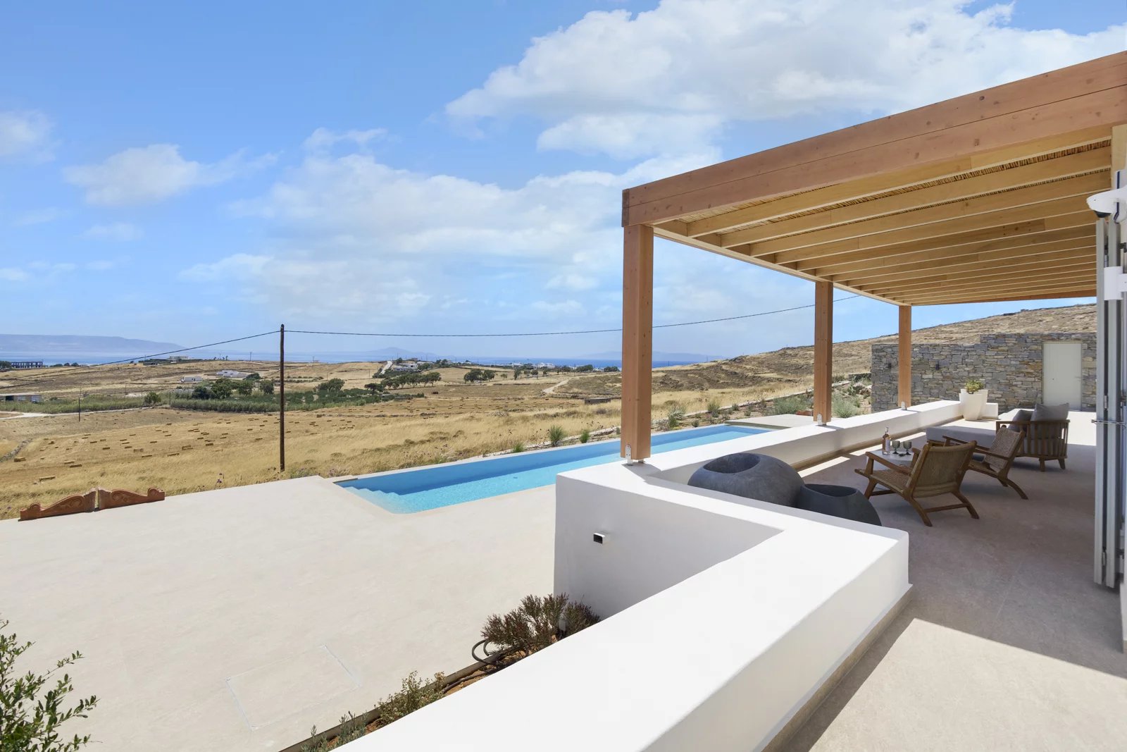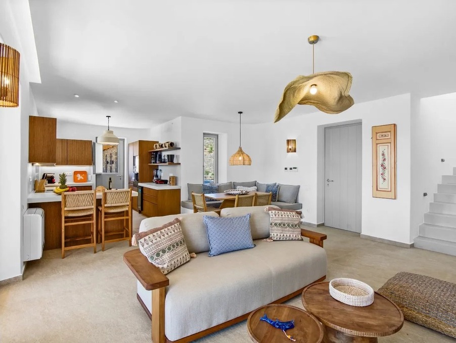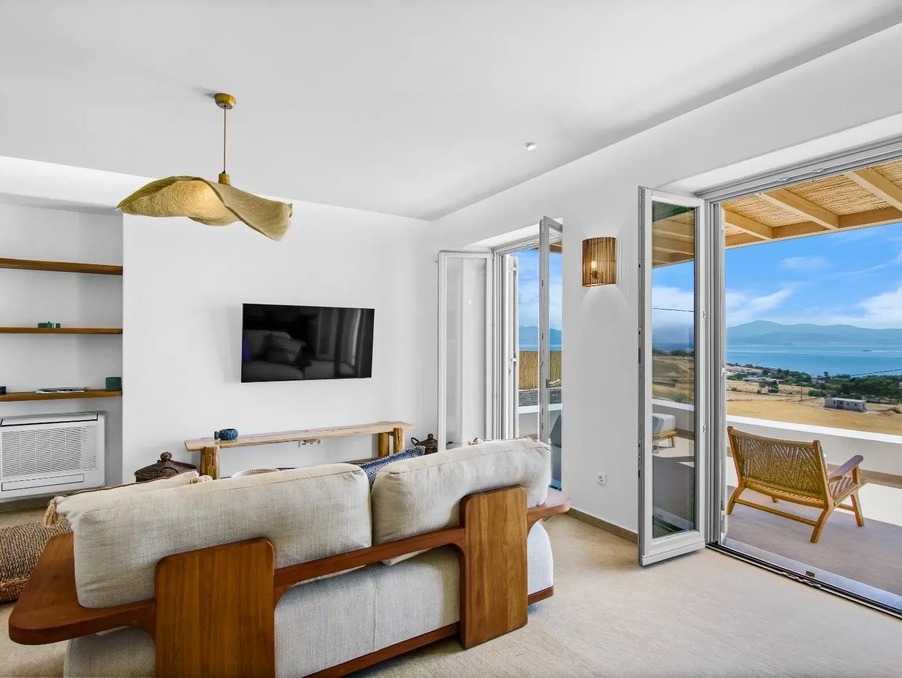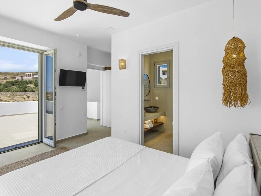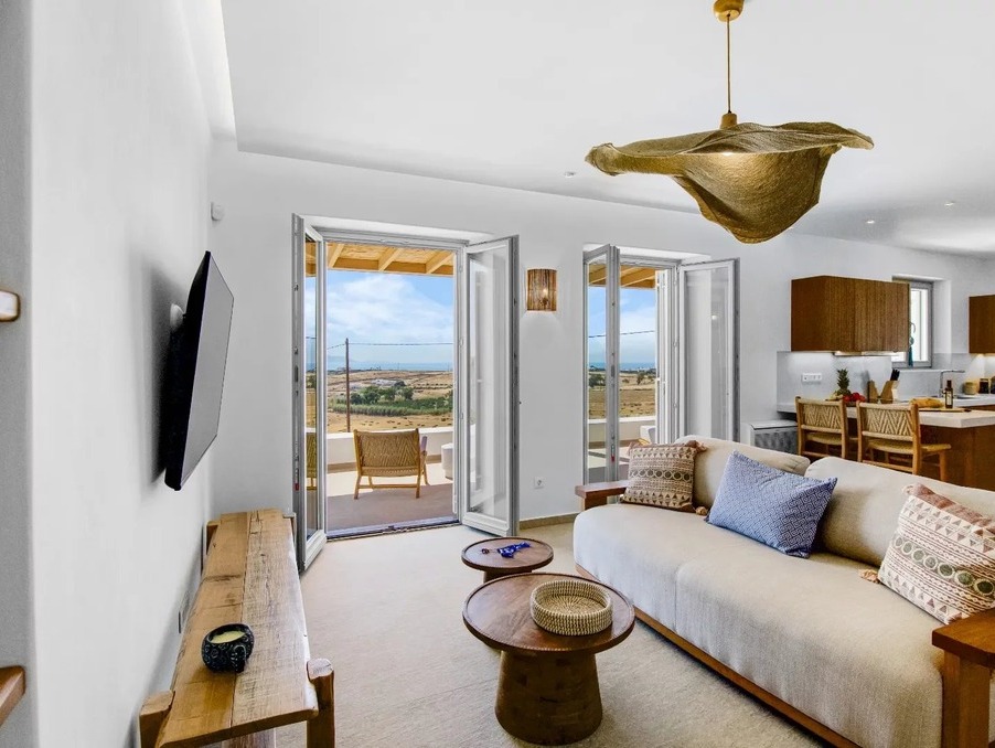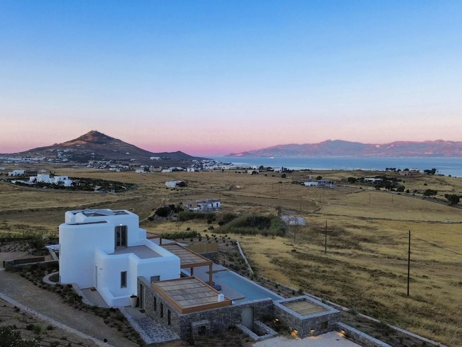 Là où la pureté cycladique rencontre l’élégance moderne — cette villa neuve de 237 m² incarne un art de vivre raffiné, avec une vue panoramique sur Naxos et le bleu profond de la mer Égée.