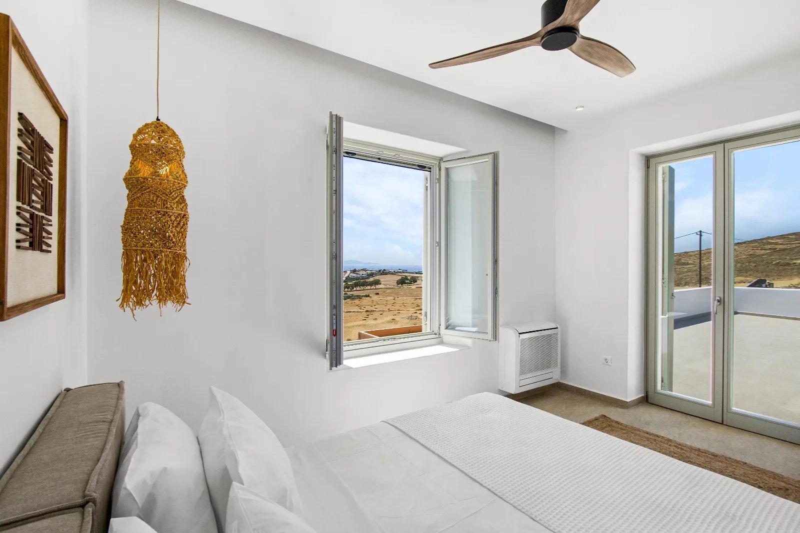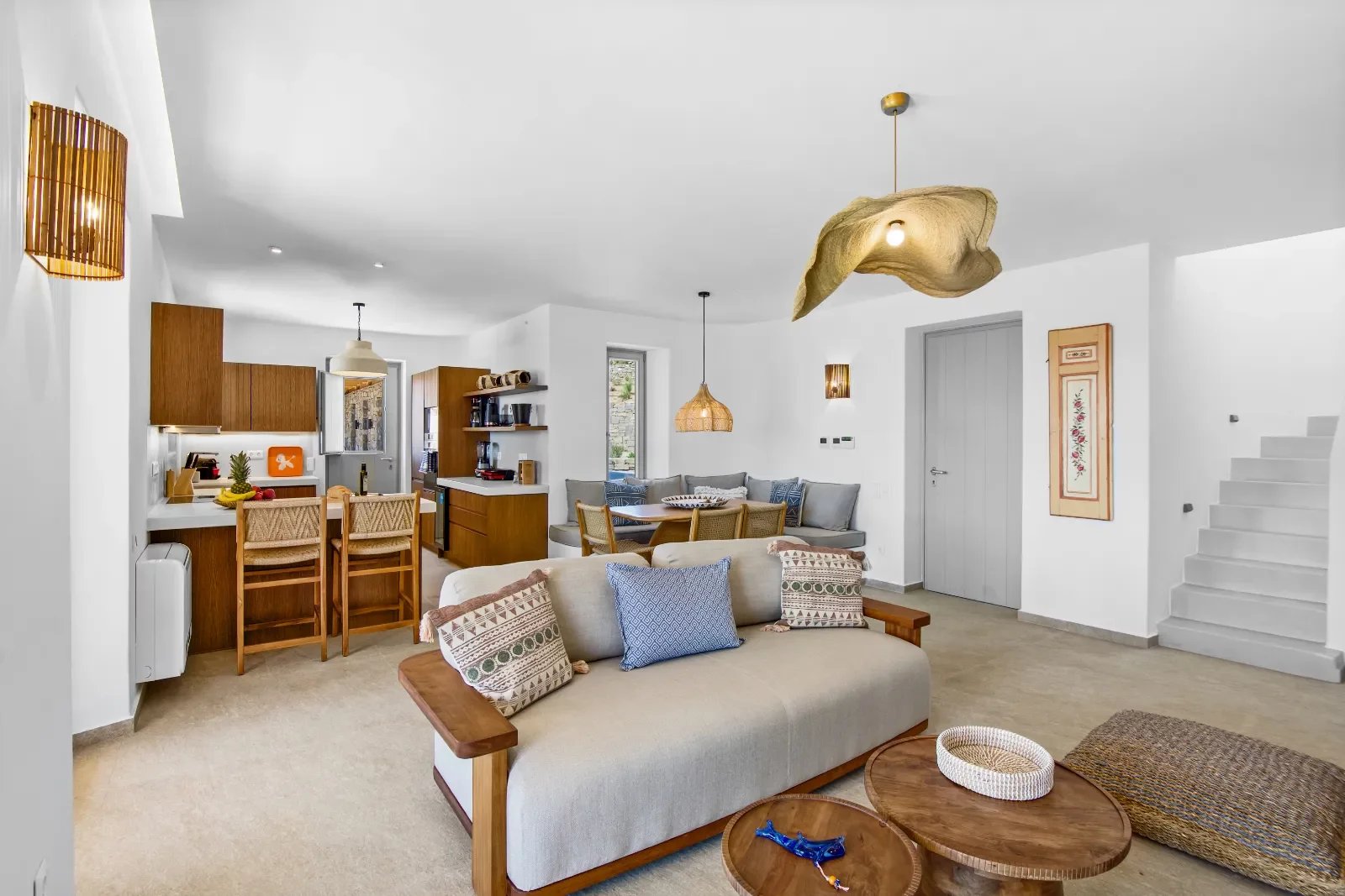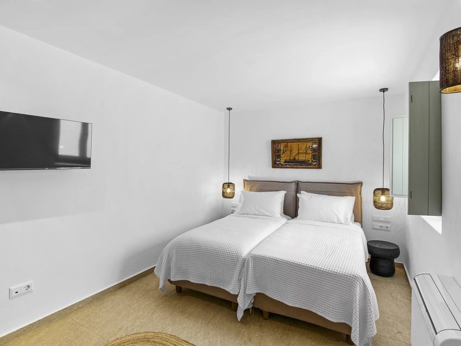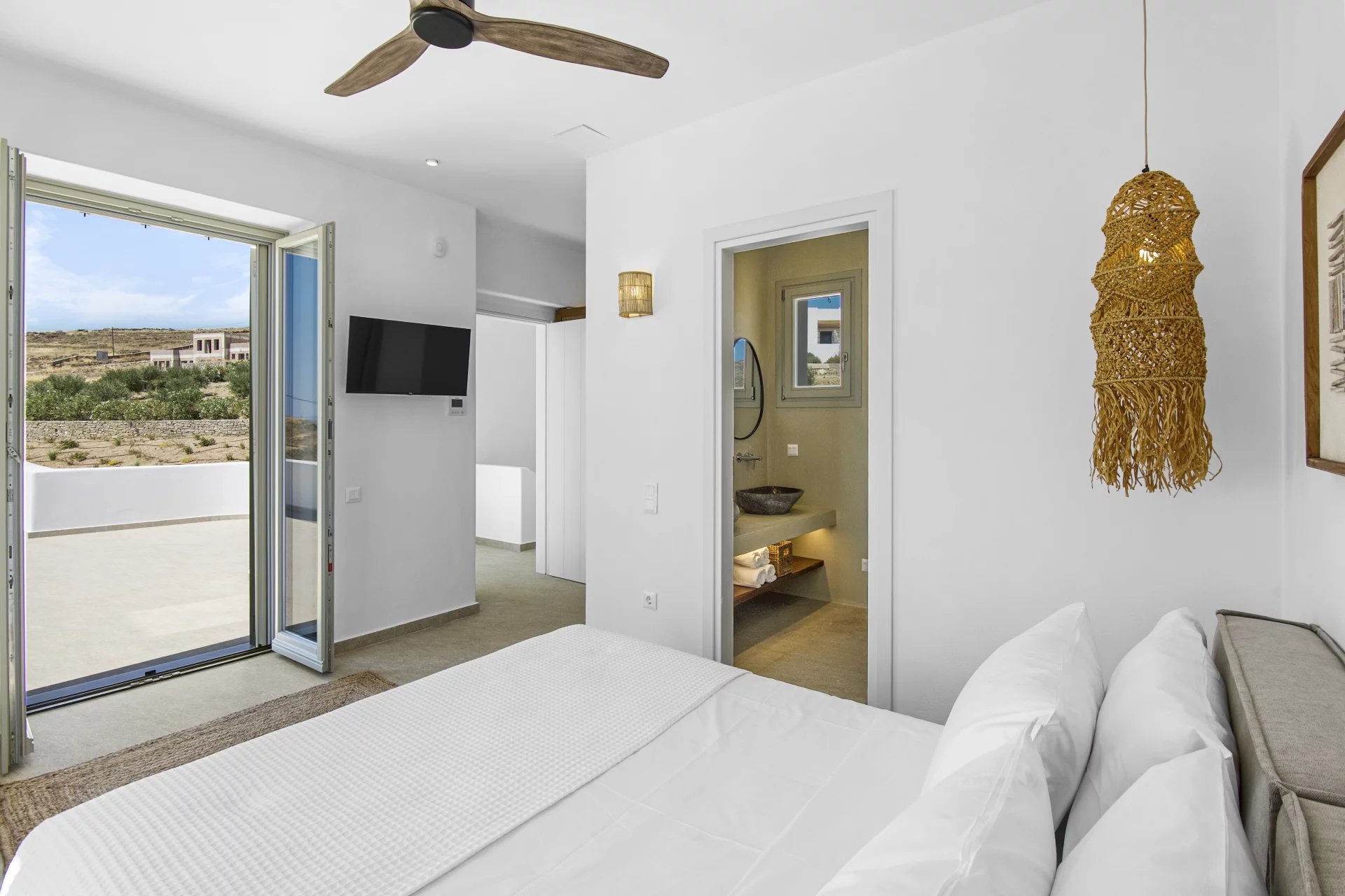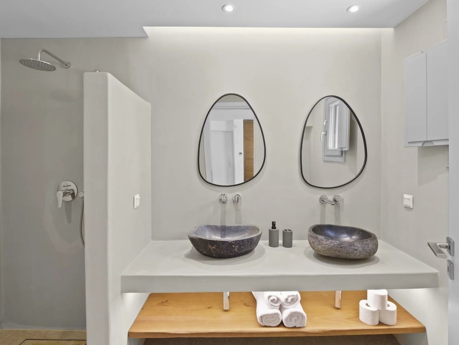 Là où la pureté cycladique rencontre l’élégance moderne — cette villa neuve de 237 m² incarne un art de vivre raffiné, avec une vue panoramique sur Naxos et le bleu profond de la mer Égée.