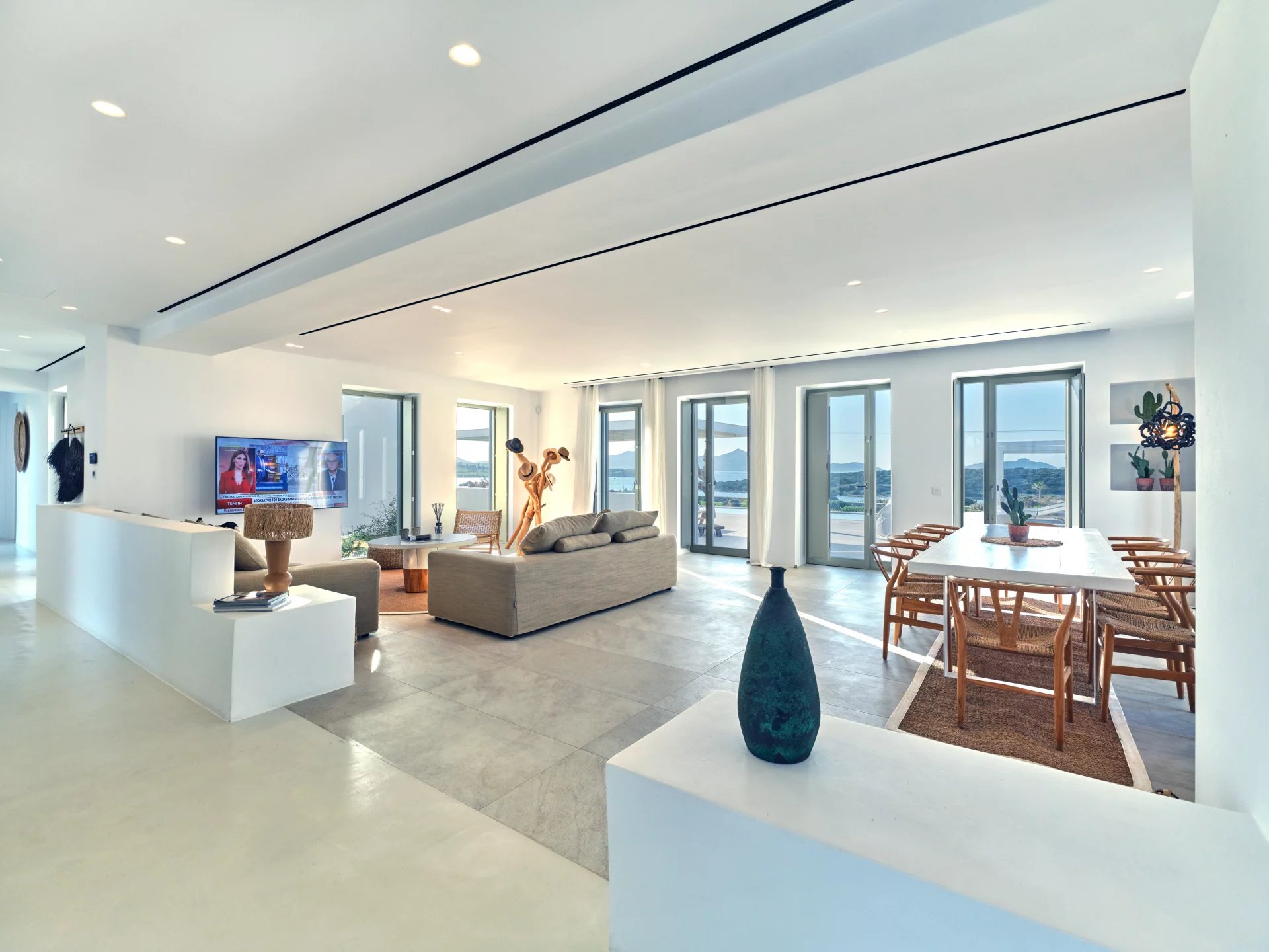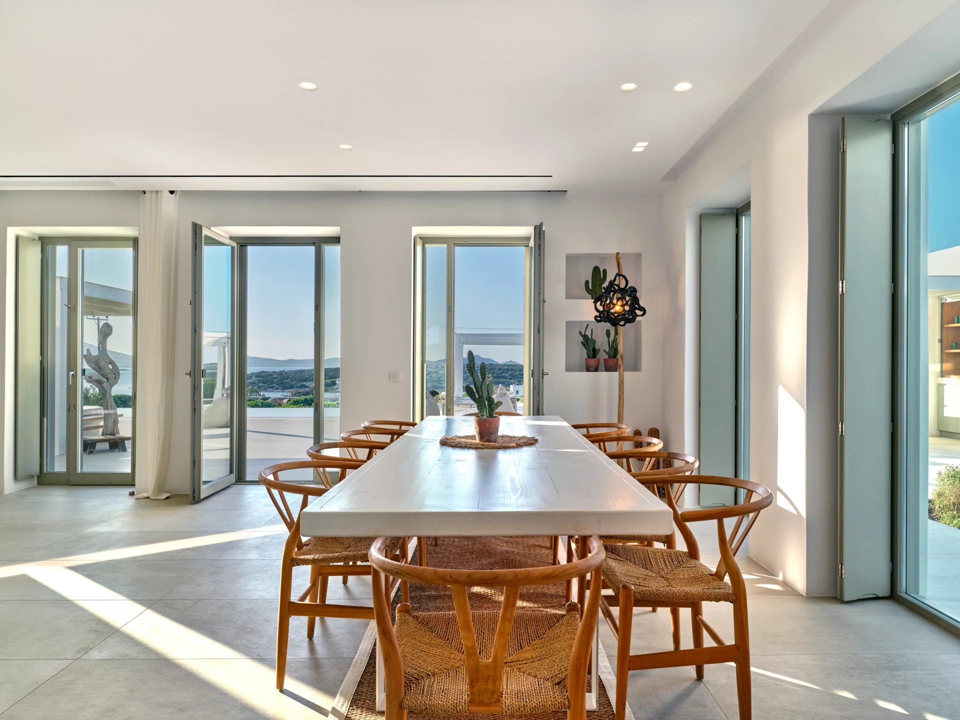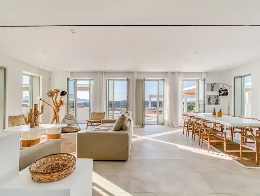 Idéalement située entre Naoussa et Santa Maria, cette propriété de 459 m² récemment construite offre une vue imprenable sur la mer et des prestations haut de gamme. Avec cinq chambres en suite, un studio indépendant, de vastes terrasses et une élégante piscine, cette villa prête à vivre est un bien d’exception.