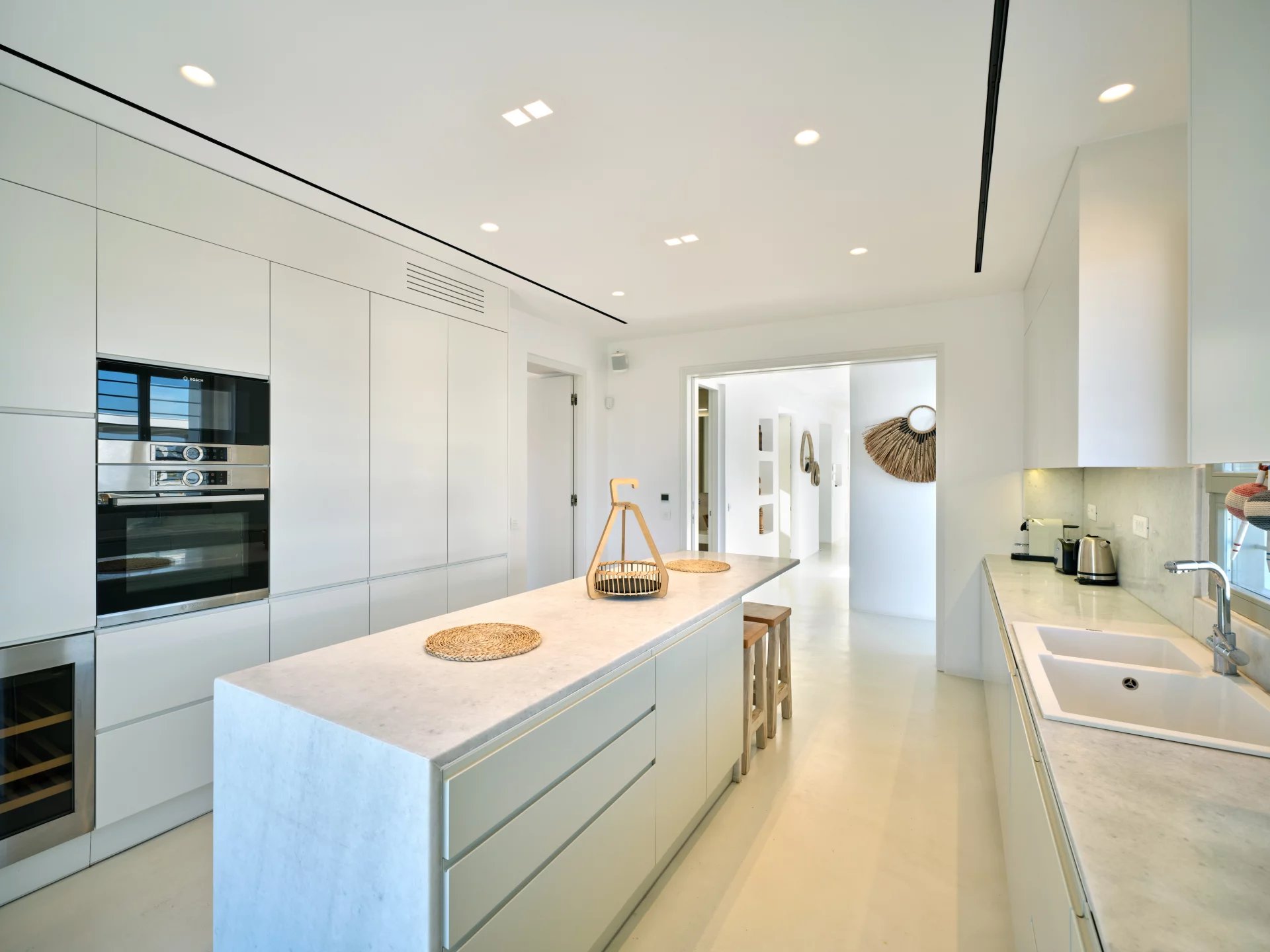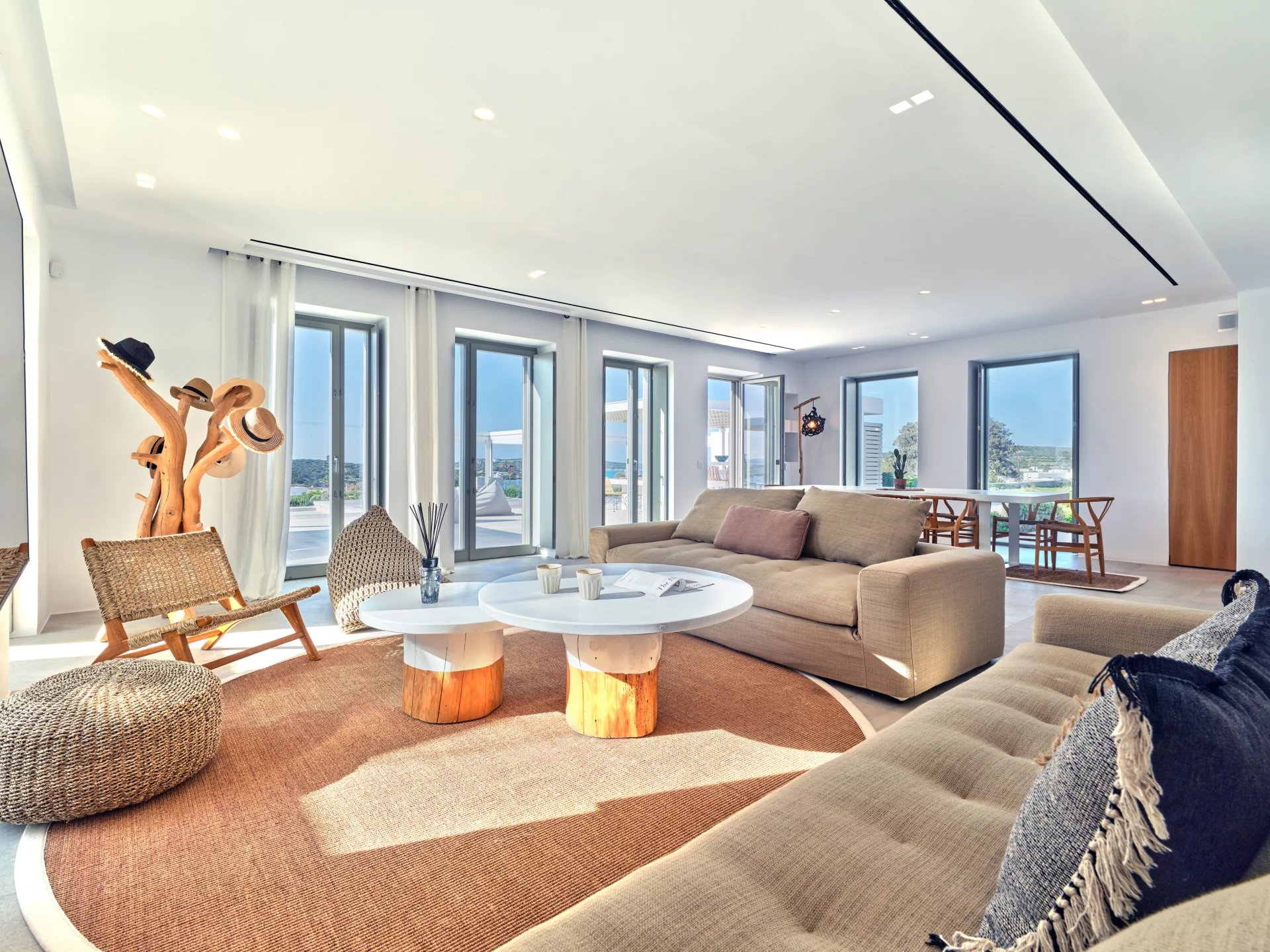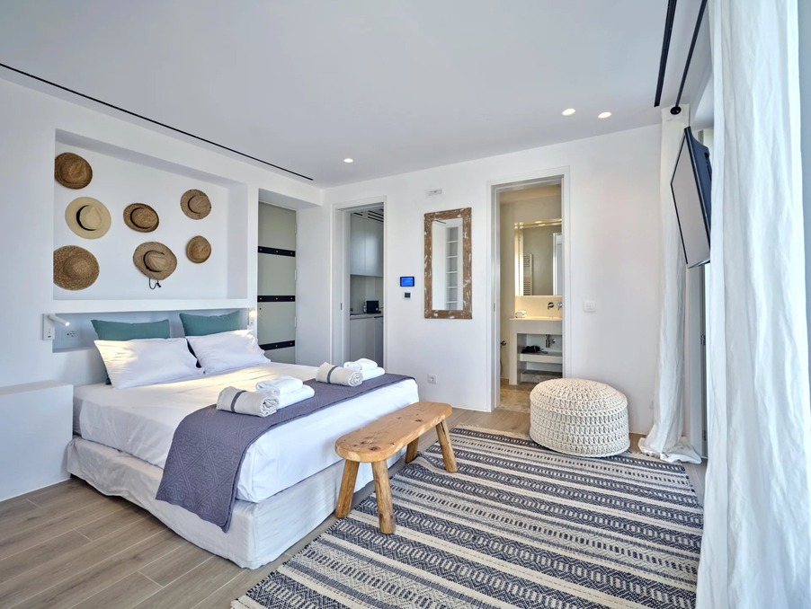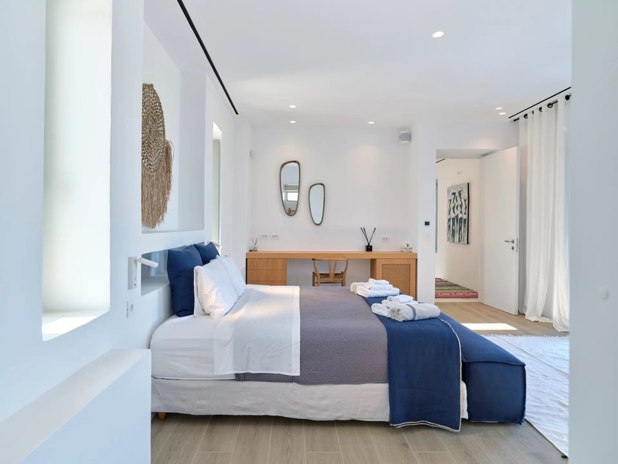 Idéalement située entre Naoussa et Santa Maria, cette propriété de 459 m² récemment construite offre une vue imprenable sur la mer et des prestations haut de gamme. Avec cinq chambres en suite, un studio indépendant, de vastes terrasses et une élégante piscine, cette villa prête à vivre est un bien d’exception.