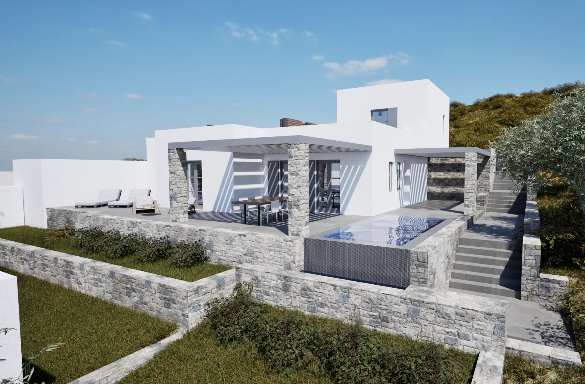 Opportunité rare pour construire deux belles villas cycladiques sur un terrain de 5 602 m² avec permis de construire actif, dans un cadre calme à proximité des plus belles plages de Paros.