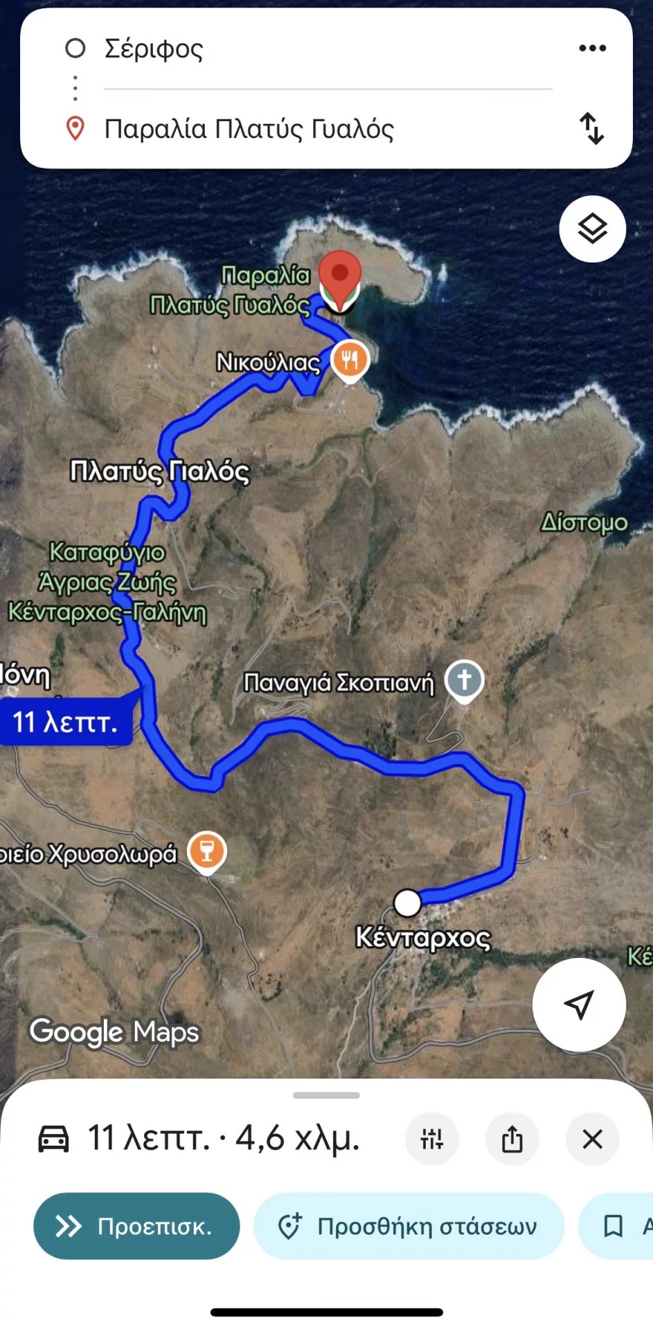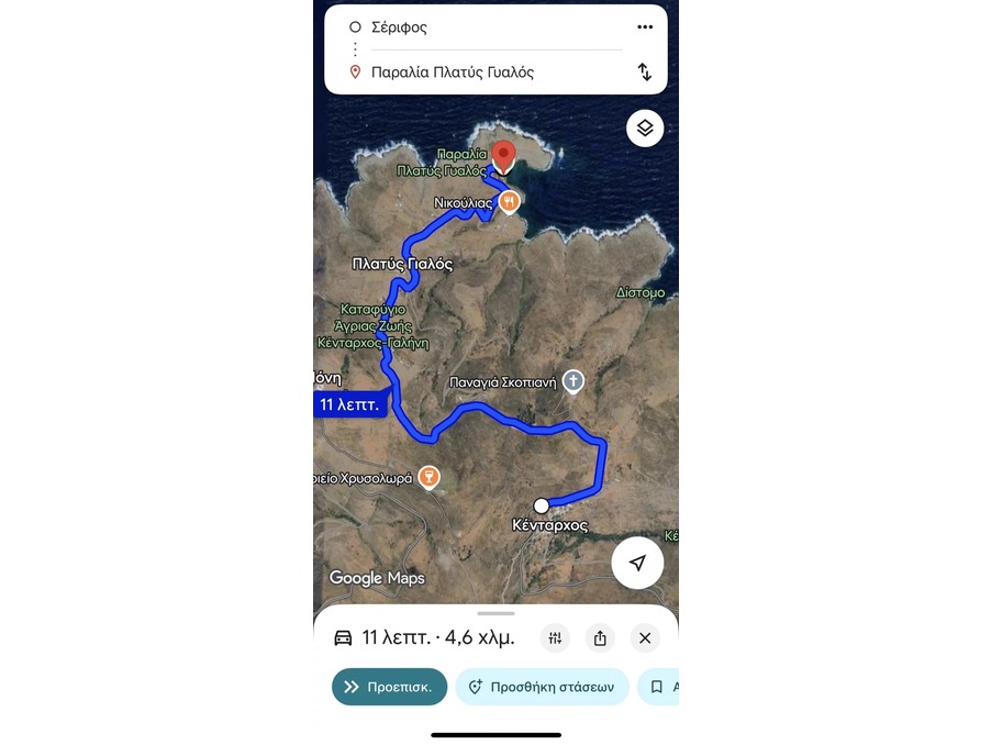 - Plage de Kentarchos : 3 min en voiture + 10 min à pied