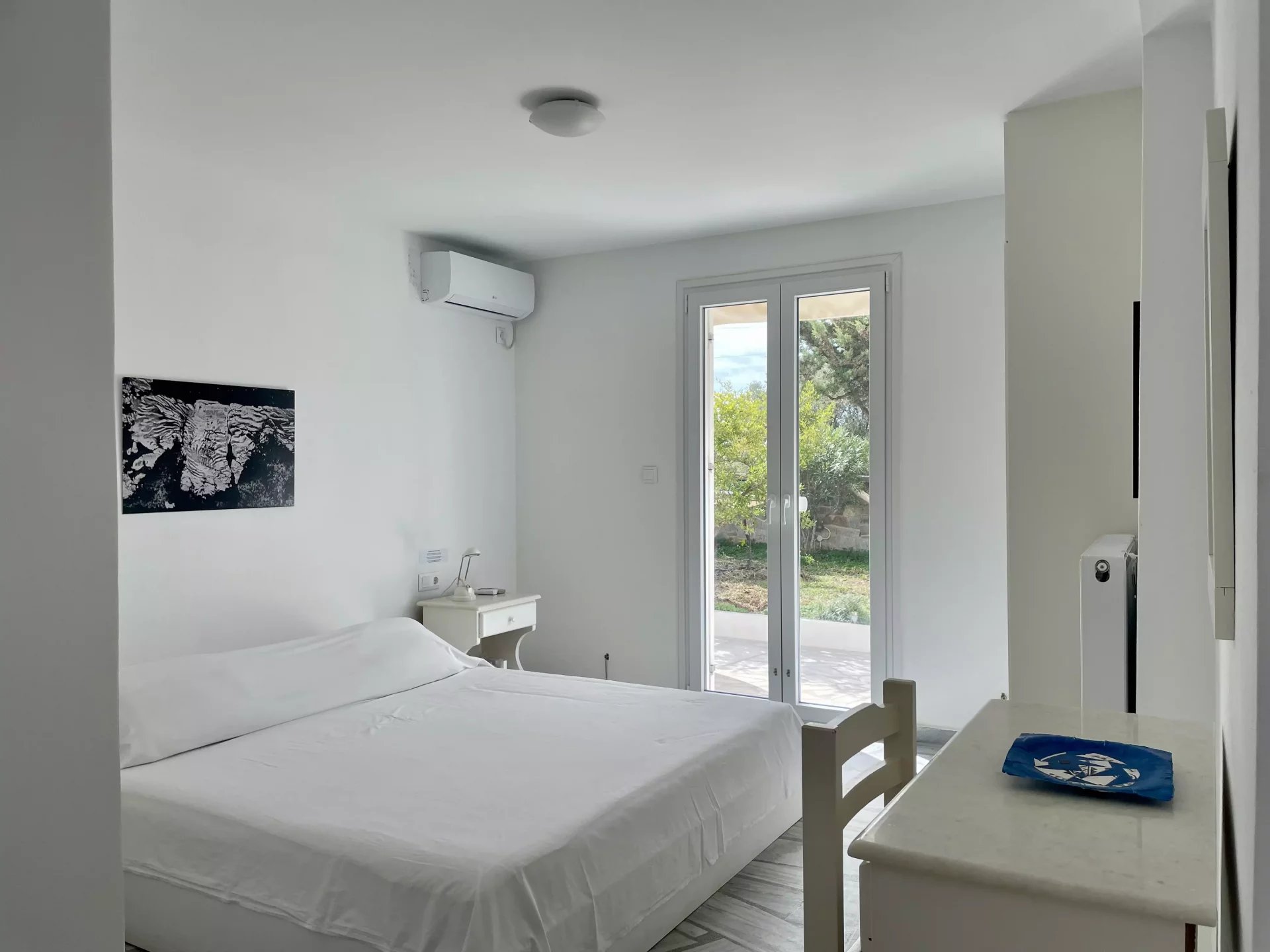 Βρίσκεται στο γραφικό χωριό της Αλυκής, μόλις 300 μέτρα από τη θάλασσα και σε κοντινή απόσταση με τα πόδια από όλες τις παροχές. Αυτό το επιπλωμένο διαμέρισμα 48 τ.μ. στο ισόγειο ανήκει σε μικρή ιδιοκτησία τριών κατοικιών, περιτριγυρισμένη από έναν ιδιαίτερα όμορφα διαμορφωμένο κήπο, όπου κάθε διαμέρισμα απολαμβάνει τη δική του εξωτερική ιδιωτικότητα.