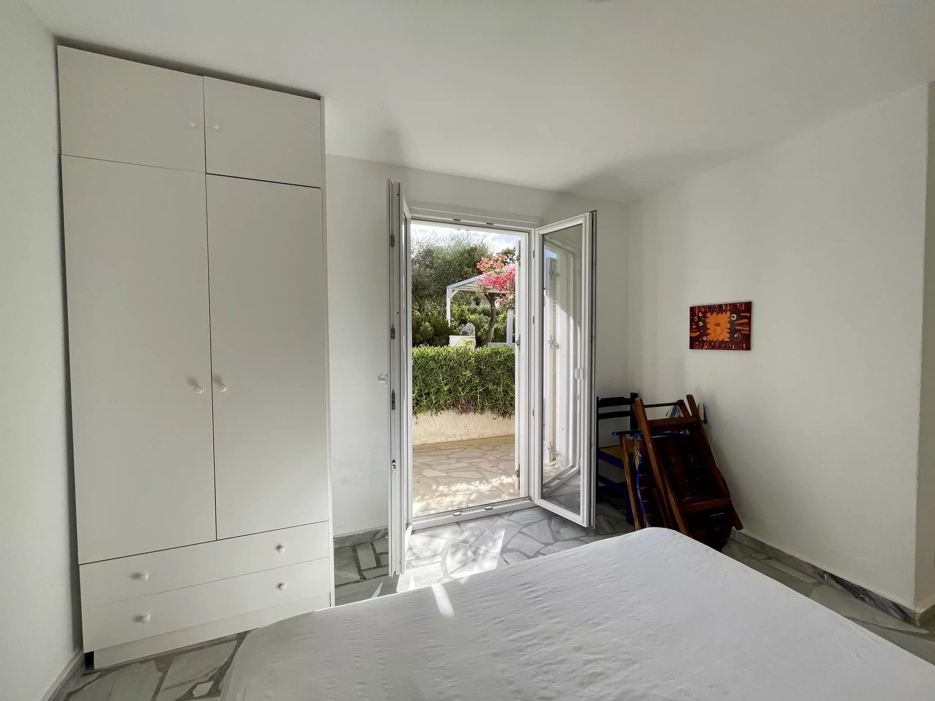 Βρίσκεται στο γραφικό χωριό της Αλυκής, μόλις 300 μέτρα από τη θάλασσα και σε κοντινή απόσταση με τα πόδια από όλες τις παροχές. Αυτό το επιπλωμένο διαμέρισμα 59 τ.μ. στο ισόγειο είναι μέρος μιας μικρής ιδιοκτησίας τριών κατοικιών, περιτριγυρισμένης από έναν όμορφα διαμορφωμένο κήπο, όπου κάθε διαμέρισμα απολαμβάνει τη δική του εξωτερική ιδιωτικότητα.