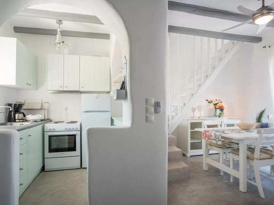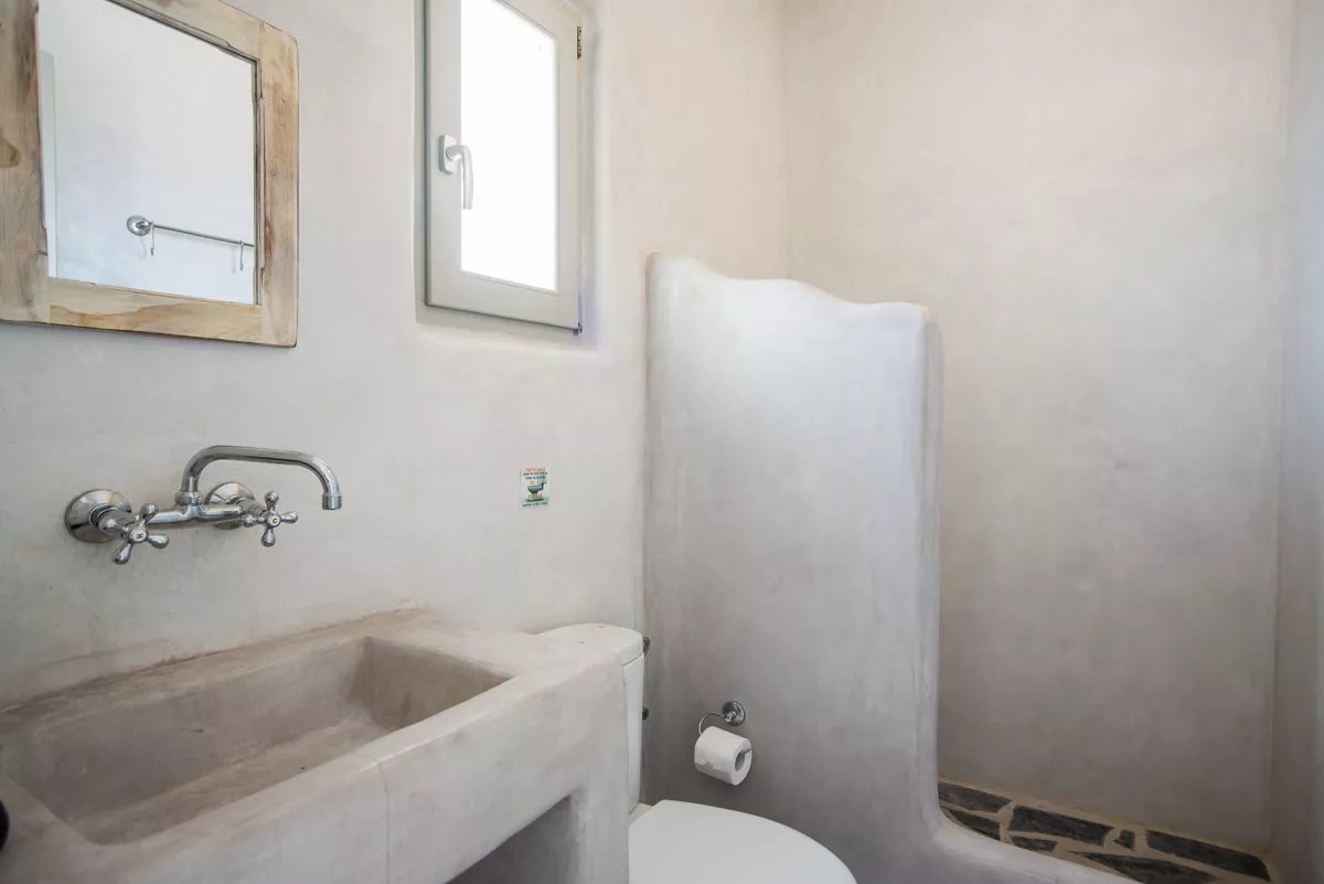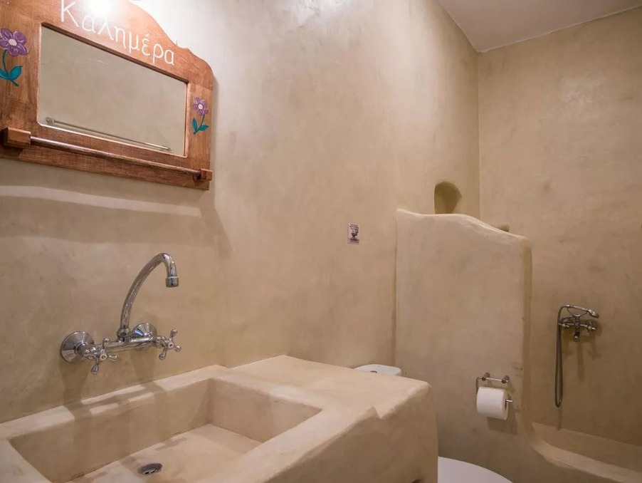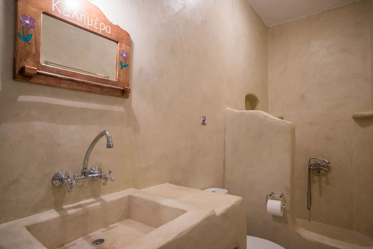 Ισόγειο • Ενιαία κουζίνα, σαλόνι με τηλεόραση, δύο ανεμιστήρες οροφής και ένα μπάνιο (στον ίδιο χώρο) • Πλήρως εξοπλισμένη κουζίνα • Μπάνιο • Βεράντα