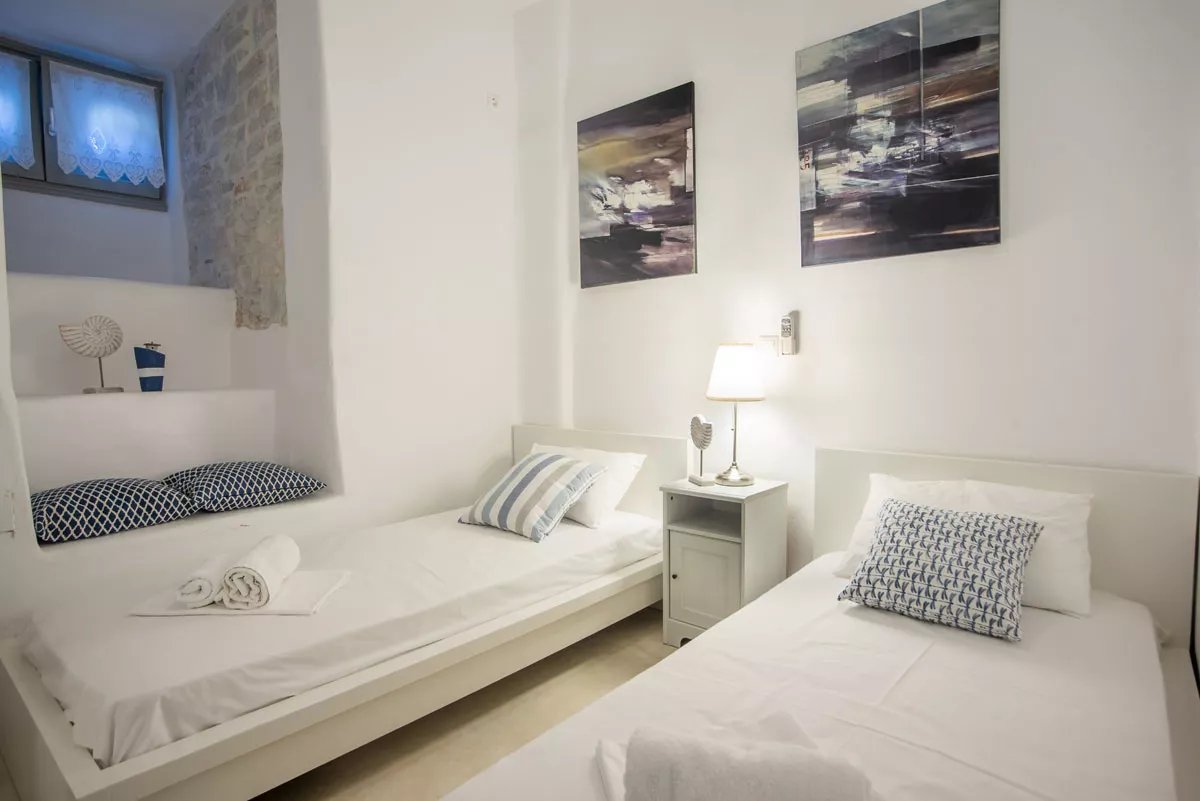 • Υπνοδωμάτιο με δύο μονά κρεβάτια και ανεμιστήρα οροφής