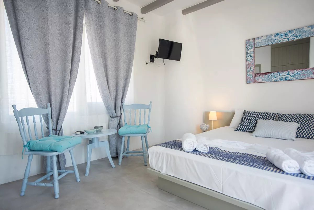 Κάτω Όροφος • Υπνοδωμάτιο με διπλό κρεβάτι, τηλεόραση και ανεμιστήρα οροφής