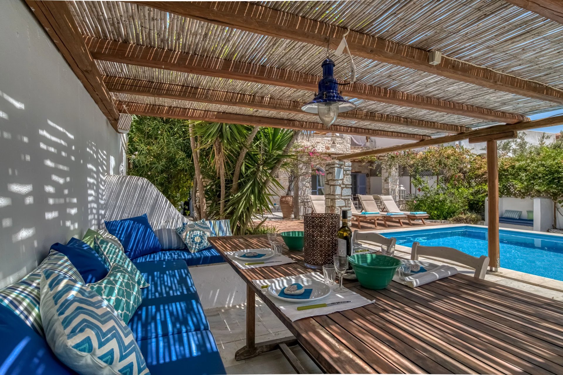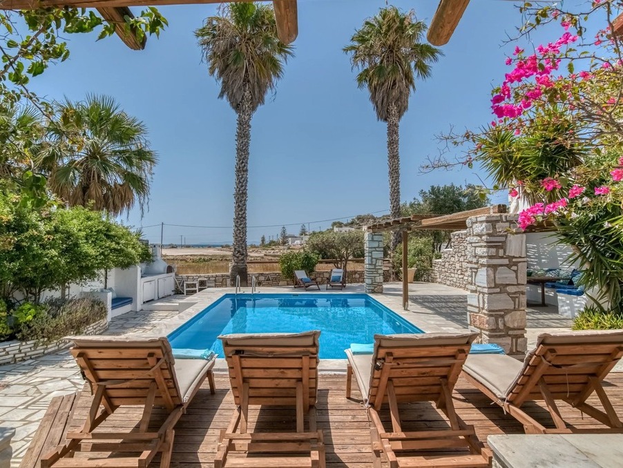 Βρίσκεται στην Αλυκή, σε απόσταση με τα πόδια από όλες τις ανέσεις, σε μια ήσυχη κατοικημένη περιοχή, αυτό το όμορφο σπίτι με πισίνα προσφέρει θέα στη θάλασσα. Το μονόροφο σπίτι περιλαμβάνει ένα μεγάλο σαλόνι με ενσωματωμένη κουζίνα, χώρο υποδοχής και τραπεζαρία. Δύο υπνοδωμάτια, το ένα εκ των οποίων διαθέτει ιδιωτικό μπάνιο/WC, και ένα επιπλέον μπάνιο/WC. Όλα τα δωμάτια ανοίγουν σε βεράντες με πρόσβαση στην πισίνα και την καλοκαιρινή κουζίνα με φούρνο για ψωμί/πίτσα. Εξωτερική σκάλα οδηγεί στη βεράντα-σολάριουμ στη σκεπή με θέα στη θάλασσα. Ολόκληρο το ακίνητο είναι περιφραγμένο με πέτρινα τείχη. Το σπίτι είναι εξοπλισμένο με κεντρική θέρμανση, καθιστώντας το ιδανικό για διαμονή όλο το χρόνο.